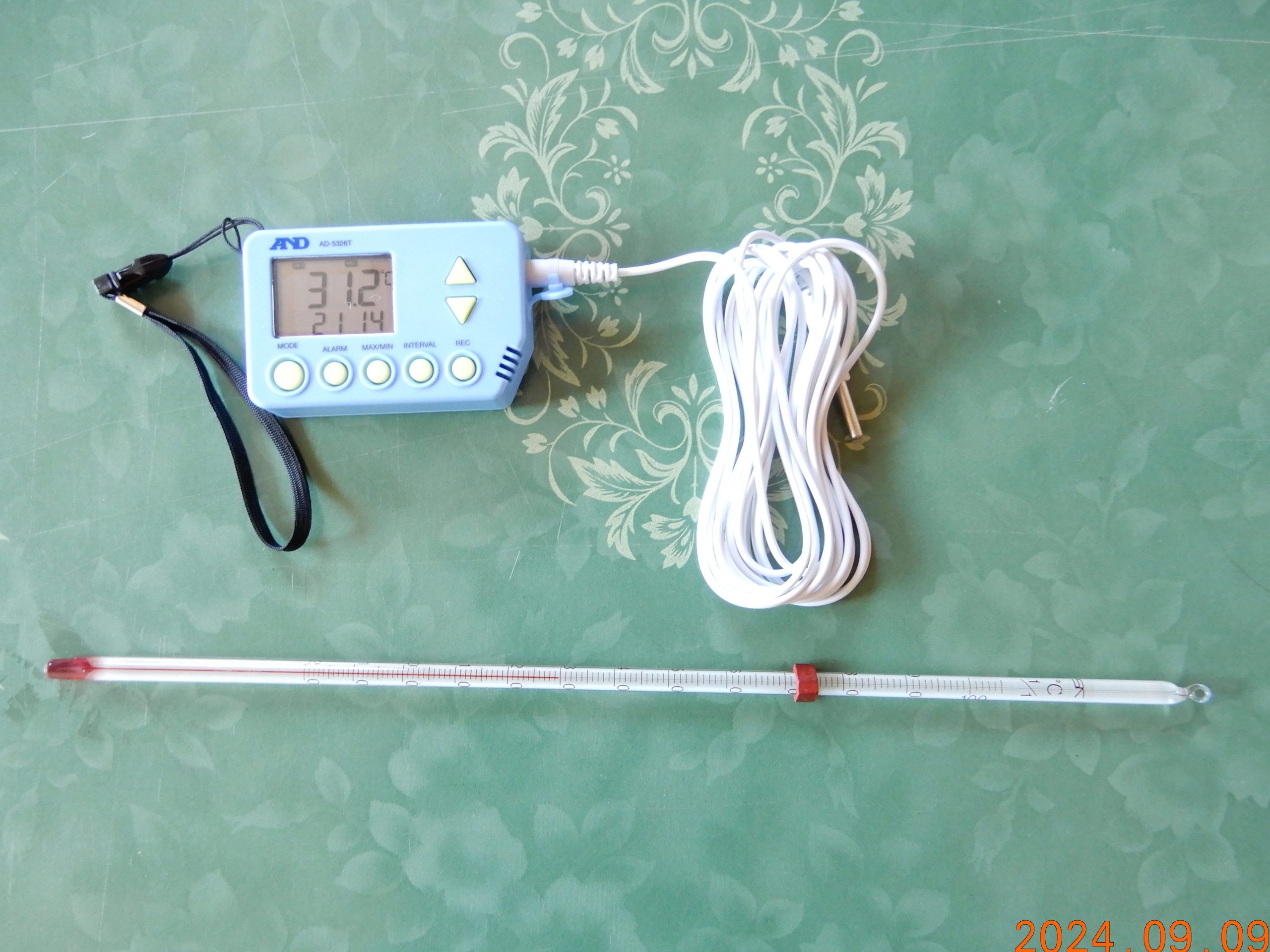温度センサーは(株)エー・アンド・デイのデジタル温度データロガーAD-5326TTを使っています。外部温度センサーを母材に差し込み、10分ごとの温度を記憶させ、次の生ごみ投入前にいったん取り外して、パソコンに温度データを取り込み、データ処理を行います。もちろん温度センサーはここに掲げた機器に限るものではありません、また、なくても堆肥化をすることはできます。