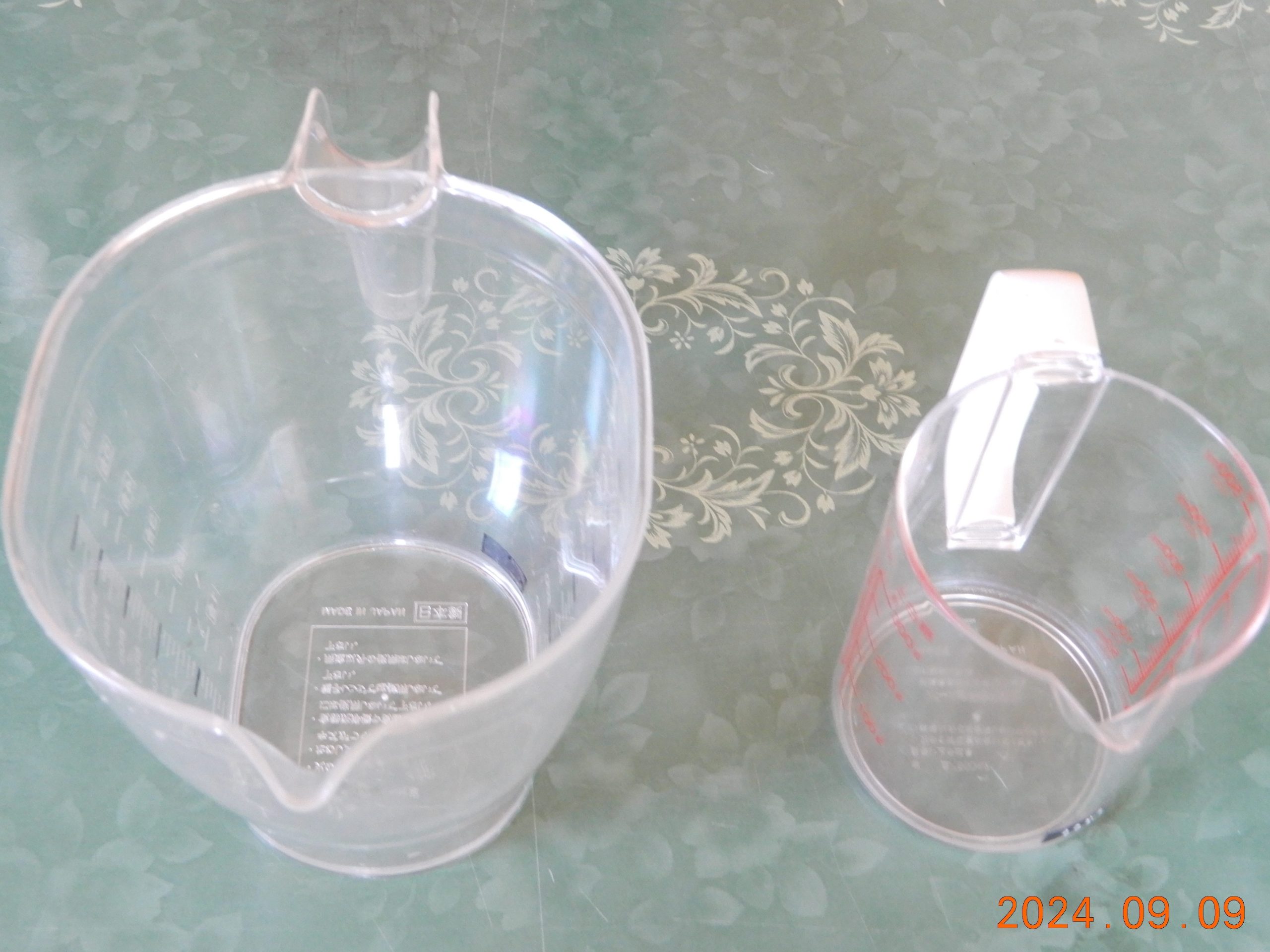 母材が乾燥したときに加水する量を測るために、また、母材を調製するときのカップとして使用します。